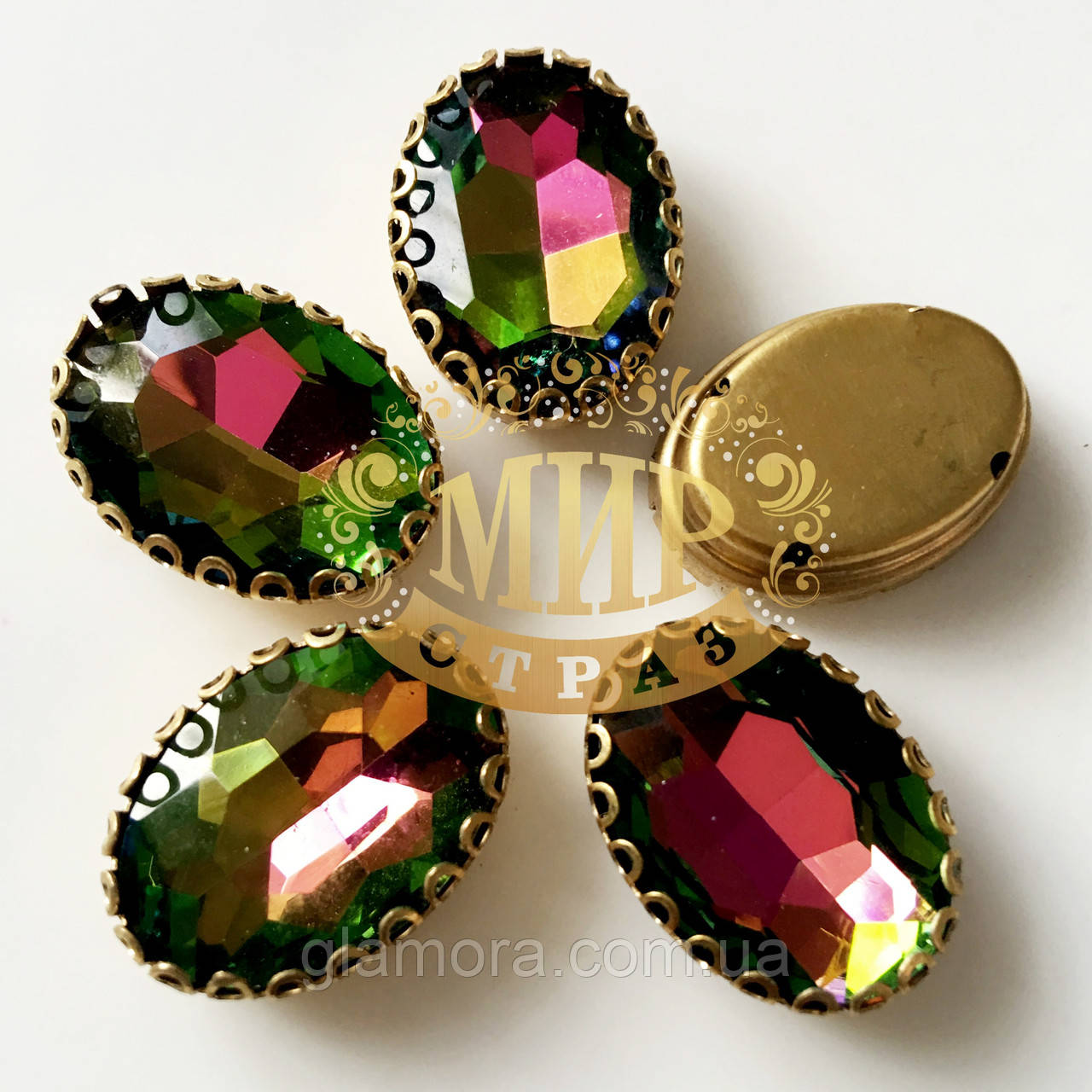 Овал в ажурній золотій оправі Колір Rainbow Розмір 13х18мм