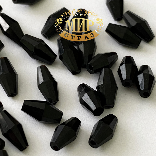 Витягнутий біконус 6*12 мм, колір Jet, 1 шт.