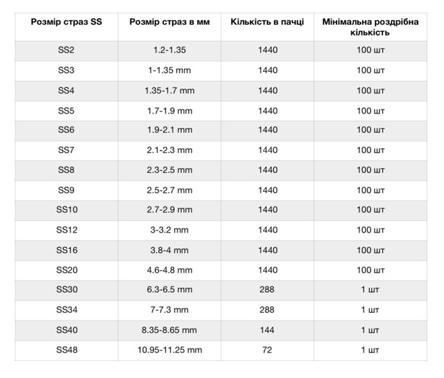 | КІЛЬКІСТЬ СТРАЗ В УПАКОВЦІ | 100 шт. |